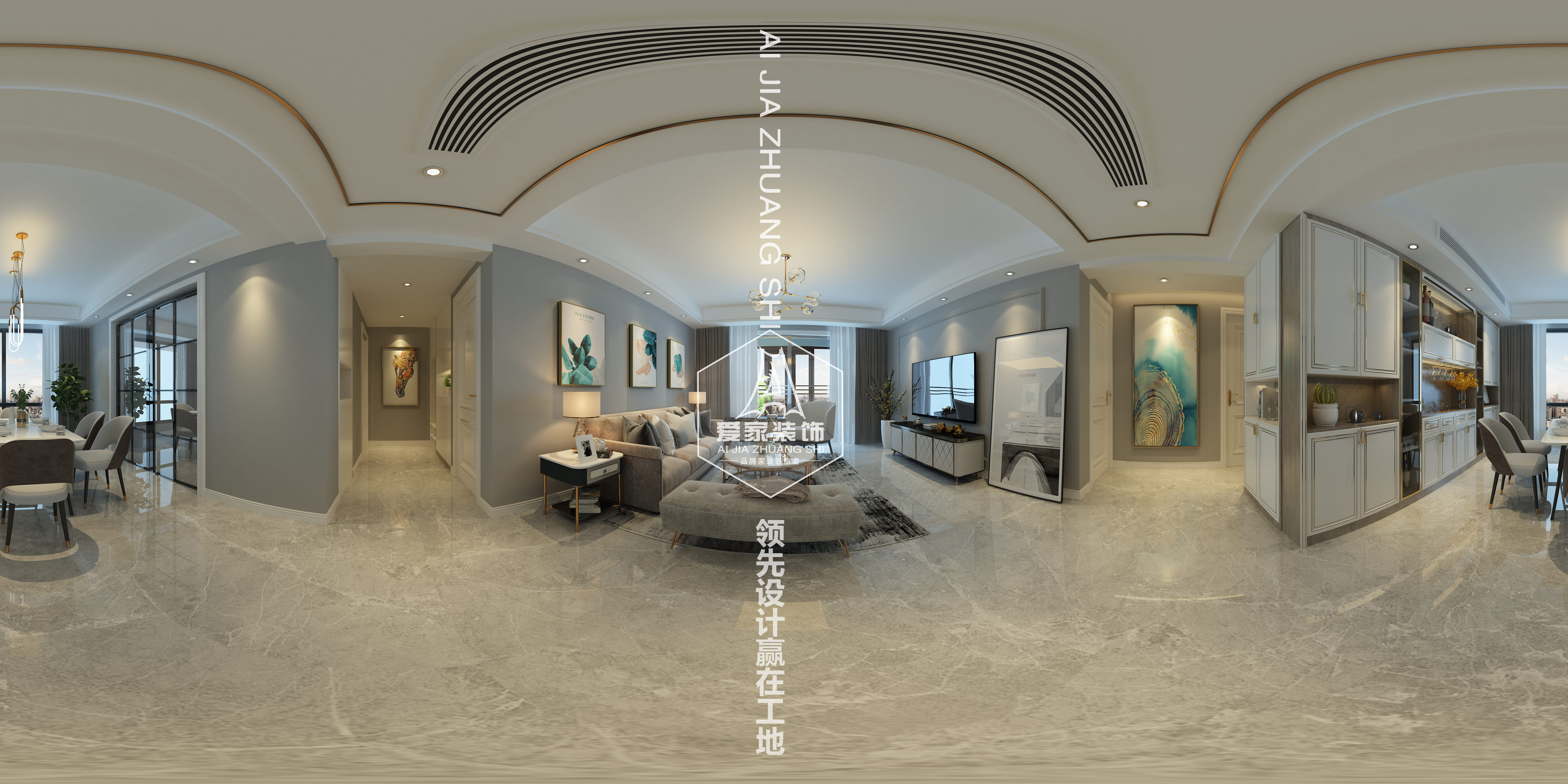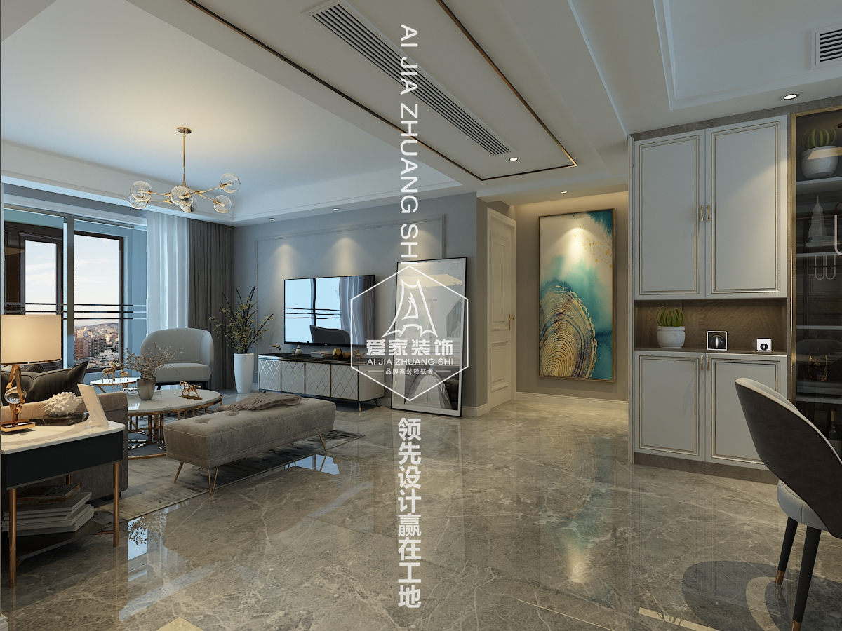 設計說(shuō)明:本案采用了白、藍、金等色調,在整個(gè)空間里呈現的是淡藍色和白色顏色組合非常流行。加了一點(diǎn)金屬材質(zhì),使整個(gè)空調更家生動(dòng),有活力。